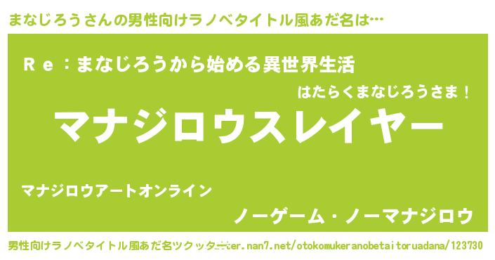 | 料理風あだ名 | 『まなじろうごはん』 |