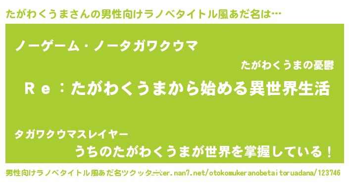 | ヒーロー風カッコイイあだ名 | 『サイバー戦士タガワクウマ』 |