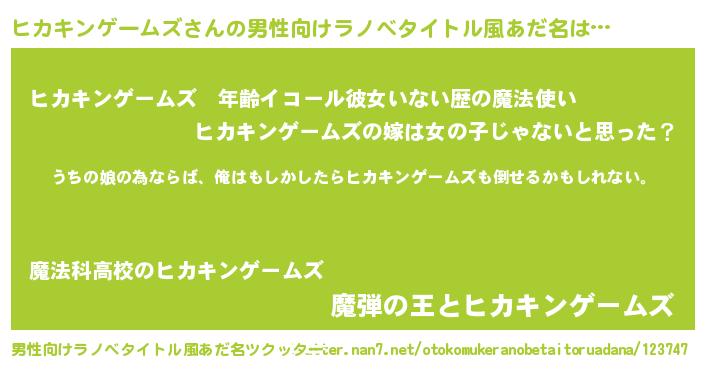 | 女子向けラノベタイトル風あだ名 | 『ヒカキンゲームズの婚約者』 |