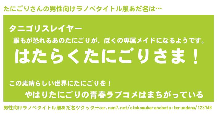 たにごりさんの男性向けラノベタイトル風あだ名をツクッター!