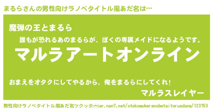 | 女子向けラノベタイトル風あだ名 | 『まるら姫と円卓の騎士』『まるら恋絵巻』 |