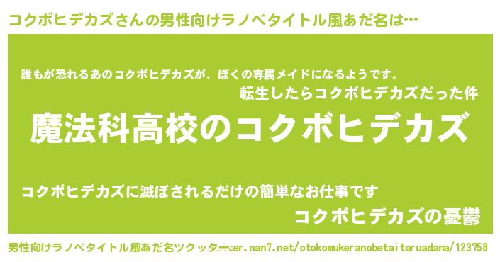 | 女子向けラノベタイトル風あだ名 | 『コクボヒデカズアンティーク』 |