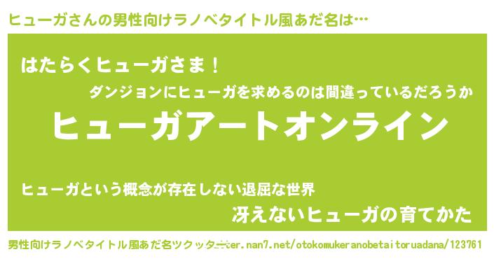 | 胡散臭い通販商品みたいなあだ名 | 『億万長者になれるブレスレット…その名も「ヒューガ」』 |