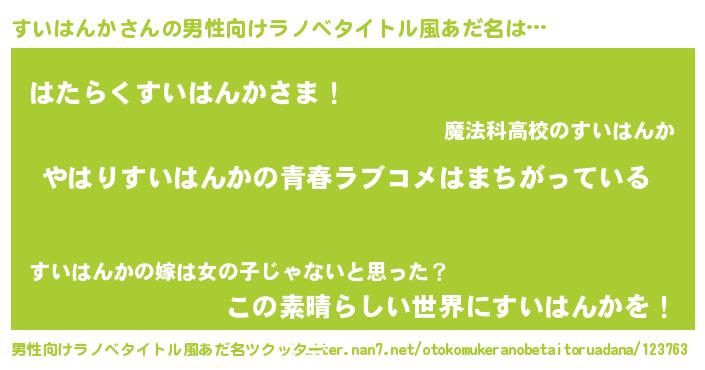 | 意味不明あだ名 | 『すいはんかフォーエバー』 |