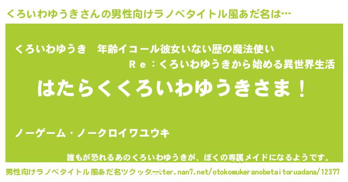 | 胡散臭い通販商品みたいなあだ名 | 『絶対に幸福をもたらす健康食品…その名も「くろいわゆうき」』 |