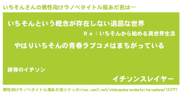 | ヒーロー風カッコイイあだ名 | 『ウルトラいちそんマン』『ネオイチソン』 |
