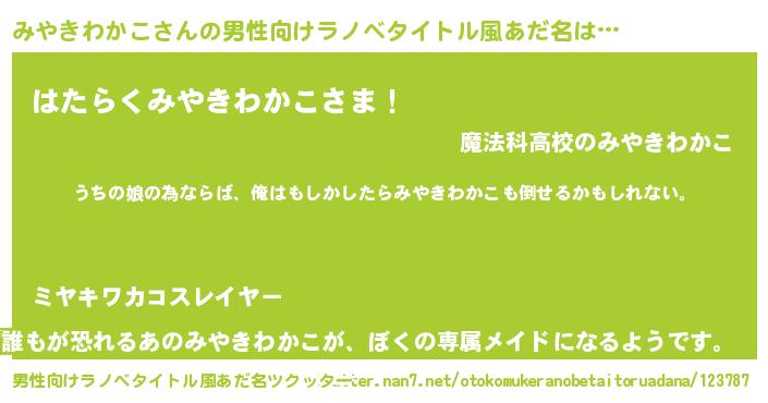 | ファンタジー風あだ名 | 『エターナルミヤキワカコー』 |