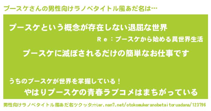 | 意味不明あだ名 | 『永久保存プースケ』『自称プースケ』 |