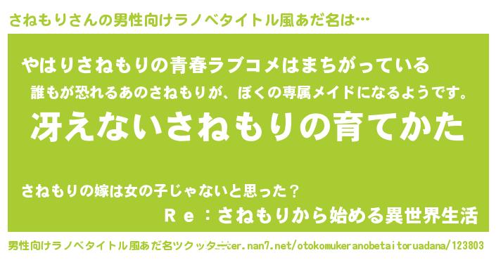 | 意味不明あだ名 | 『さねもりフォーエバー』『自称さねもり』 |