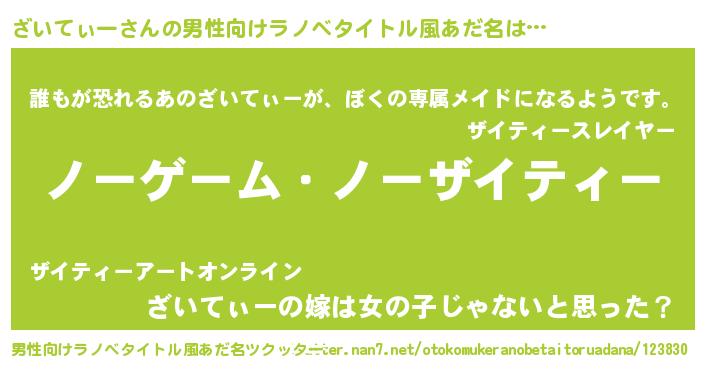 | ヒーロー風カッコイイあだ名 | 『慈愛の使者ざいてぃー』『幻影騎士ザイ』 |