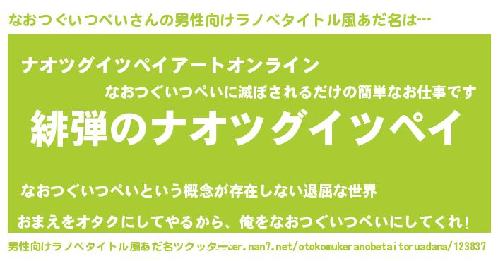 | 胡散臭い通販商品みたいなあだ名 | 『必ず成功するブレスレット…その名も「なおつぐいつぺい」』 |