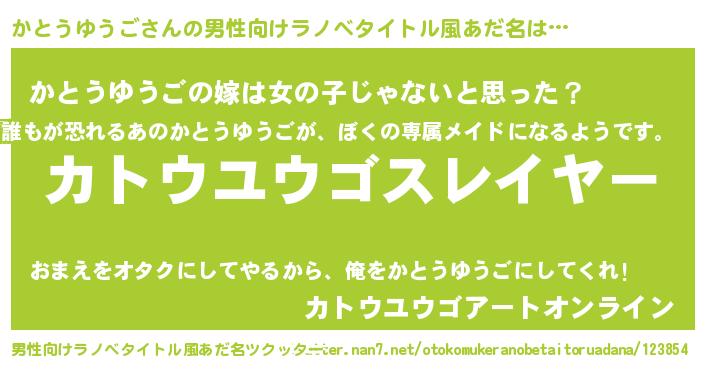 | ヒーロー風カッコイイあだ名 | 『暗黒騎士カト』『スーパーカトウユウゴ』 |