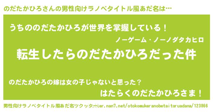 | 女子向けラノベタイトル風あだ名 | 『のだたかひろの玉の輿計画!』 |