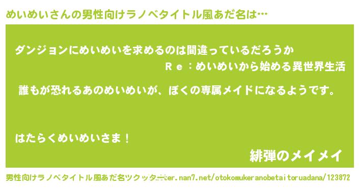 | ヘコむあだ名 | 『めいめい(遠い目)』『めいっちょ』 |
