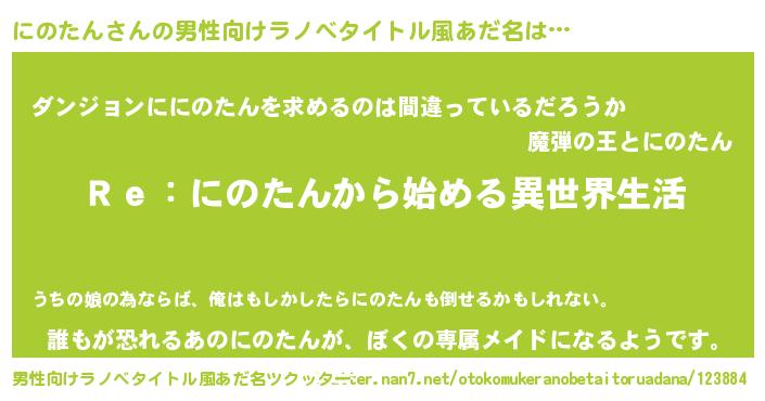 | 女子向けラノベタイトル風あだ名 | 『にのたんストレイドッグス』 |