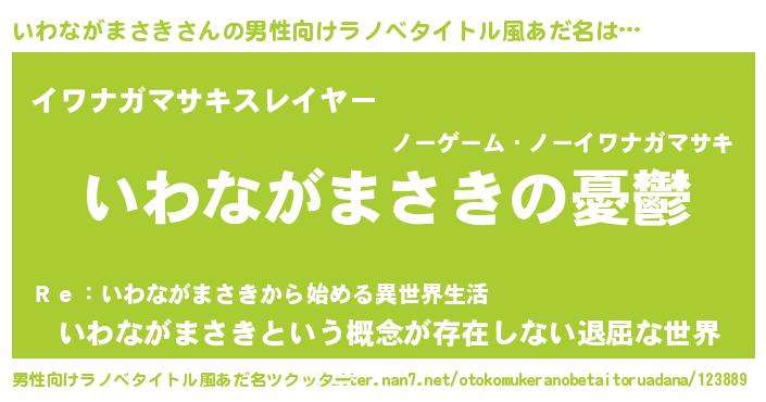 | ヘコむあだ名 | 『いわにー』『いわながまさき(笑)』 |