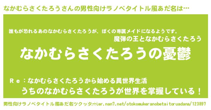 | 女子向けラノベタイトル風あだ名 | 『(仮)なかむらさくたろうのやんごとなき事情』 |