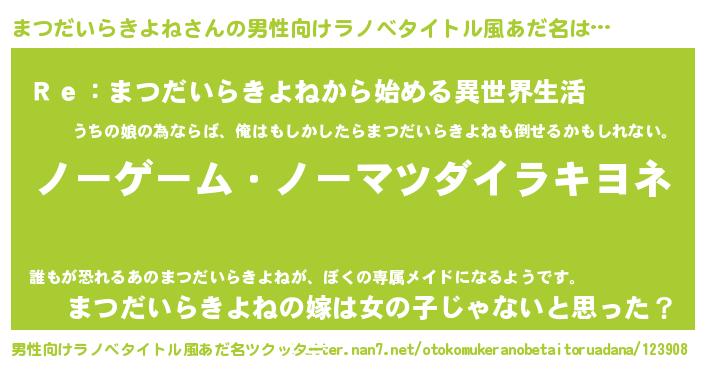 | 女子向けラノベタイトル風あだ名 | 『まつだいらきよね恋絵巻』 |