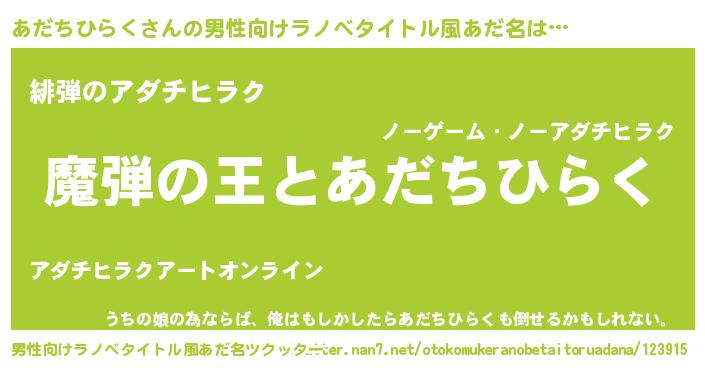 | 意味不明あだ名 | 『住所不定無職あだちひらく(79歳)』 |