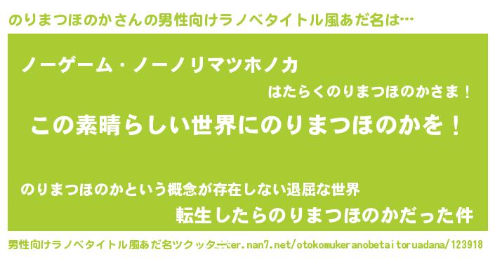 | 胡散臭い通販商品みたいなあだ名 | 『あなたにだけ特別に提供する限定10本のレアな日本酒…その名も「のりまつほのか」』 |