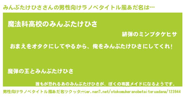| 女子向けラノベタイトル風あだ名 | 『みんぶたけひさ恋絵巻』 |