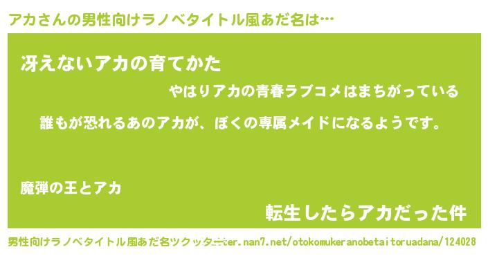 | 胡散臭い通販商品みたいなあだ名 | 『来世でも幸せになれる健康食品…その名も「アカ」』 |