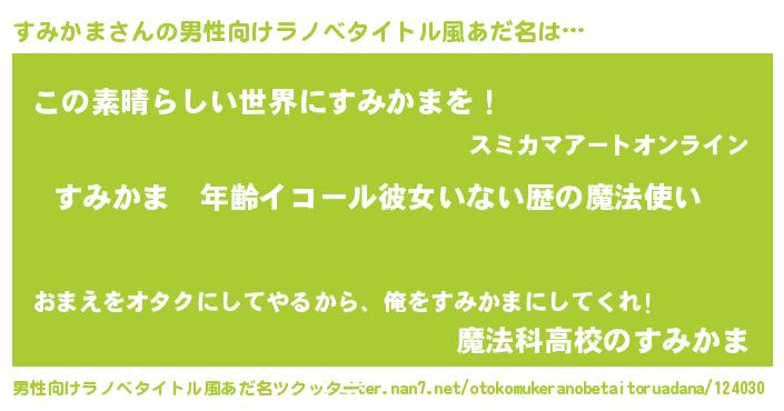| 女子向けラノベタイトル風あだ名 | 『すみかまの玉の輿計画!』 |