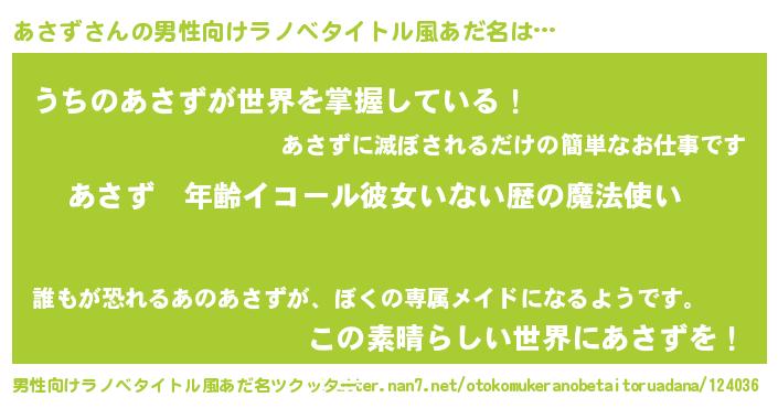 | 女子向けラノベタイトル風あだ名 | 『あさずの玉の輿計画!』 |