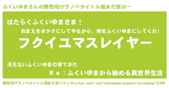 | 肩書あだ名 | 『ふくいゆま大将』『ふくいゆま総統』 |