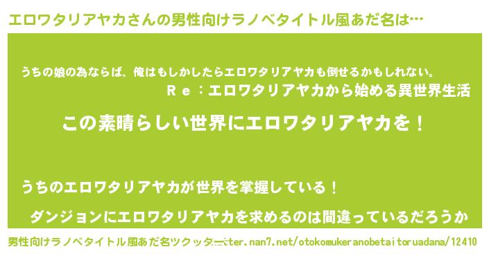| 意味不明あだ名 | 『住所不定無職エロワタリアヤカ(10歳)』 |