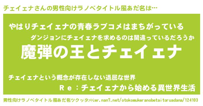 | 肩書あだ名 | 『チェイェナ教官』『チェイェナ国家主席』 |