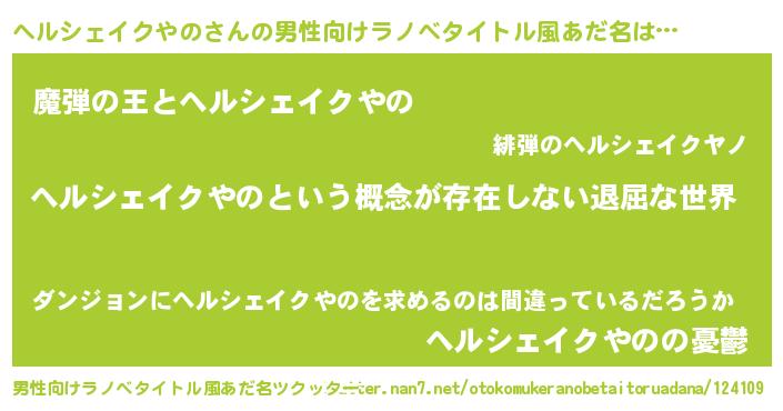| 意味不明あだ名 | 『永久保存ヘルシェイクやの』 |