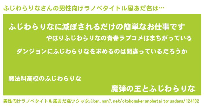 | 女子向けラノベタイトル風あだ名 | 『ふじわらりなの卵を拾いまして』 |