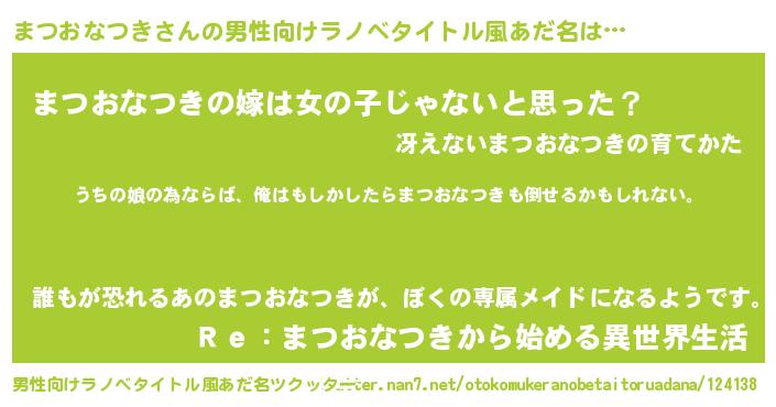 女子向けラノベタイトル風あだ名 | 『まつおなつき伯爵の花嫁』 |