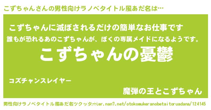 | 女子向けラノベタイトル風あだ名 | 『(仮)こずちゃんのやんごとなき事情』 |