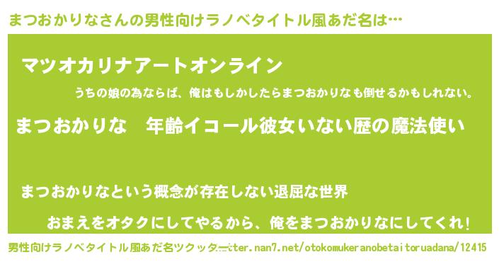 | 胡散臭い通販商品みたいなあだ名 | 『億万長者になれる霊験あらたかなお札…その名も「まつおかりな」』 |