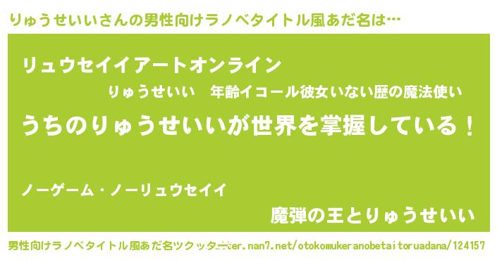 | 胡散臭い通販商品みたいなあだ名 | 『億万長者になれるブレスレット…その名も「りゅうせいい」』 |