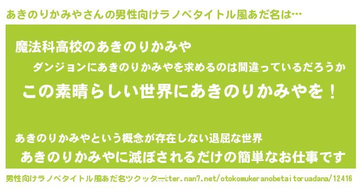 | 意味不明あだ名 | 『住所不定無職あきのりかみや(9歳)』 |