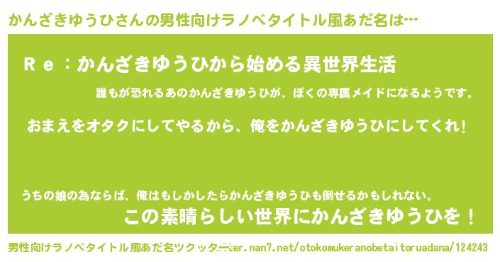 | ヘコむあだ名 | 『かんざきゆうひ(笑)』『牛乳』 |