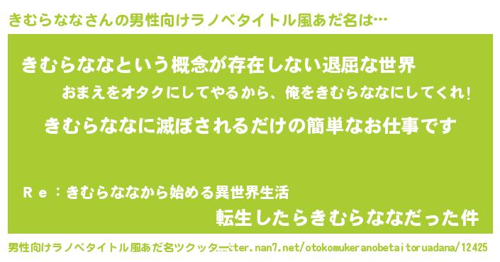 | 意味不明あだ名 | 『永久保存きむらなな』『自称きむらなな』 |