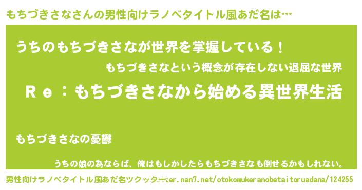 | 女子向けラノベタイトル風あだ名 | 『もちづきさなストレイドッグス』 |
