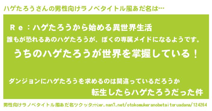| 意味不明あだ名 | 『自称ハゲたろう』『永久保存ハゲたろう』 |