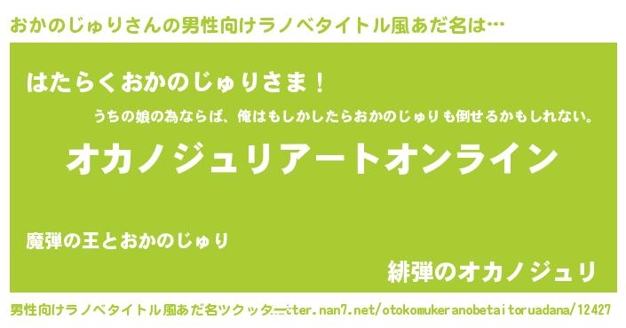 | 女子向けラノベタイトル風あだ名 | 『おかのじゅり姫と円卓の騎士』 |