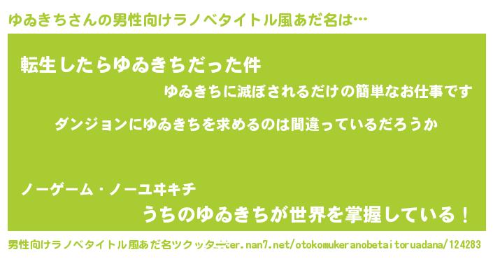 | ヘコむあだ名 | 『ゆゐを』『なまこ酢』『ゆゐもー』 |