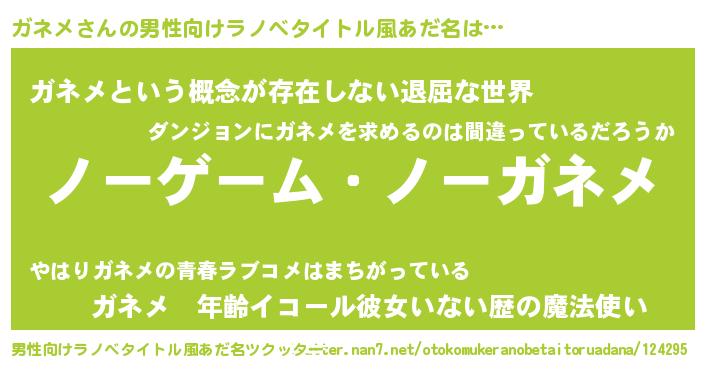 | ヒーロー風カッコイイあだ名 | 『慈愛の使者ガネメ』『ネオガネメ』 |