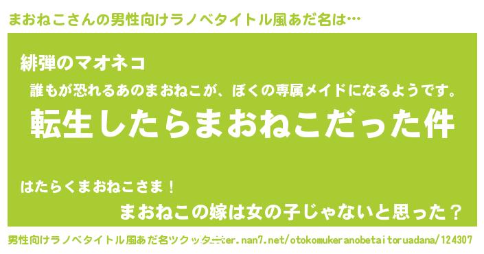 | 女子向けラノベタイトル風あだ名 | 『まおねこの玉の輿計画!』 |