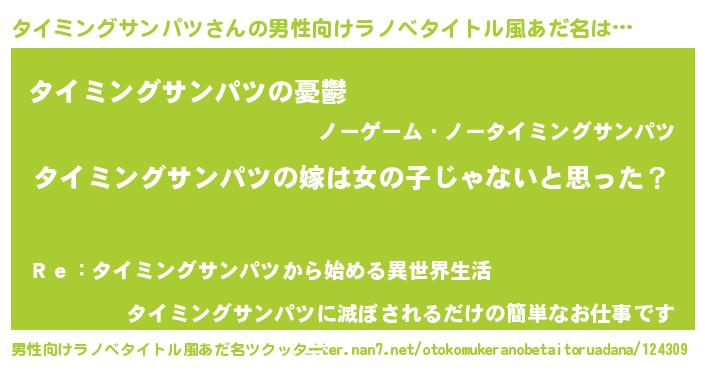 | 女子向けラノベタイトル風あだ名 | 『タイミングサンパツ様がみてる』 |