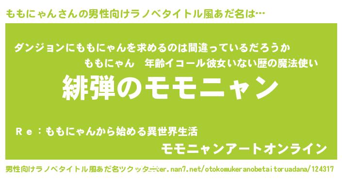| 胡散臭い通販商品みたいなあだ名 | 『信頼と実績のペンダント…その名も「ももにゃん」』 |