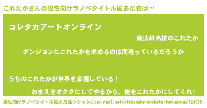 | 女子向けラノベタイトル風あだ名 | 『これたかは平凡を望む』 |