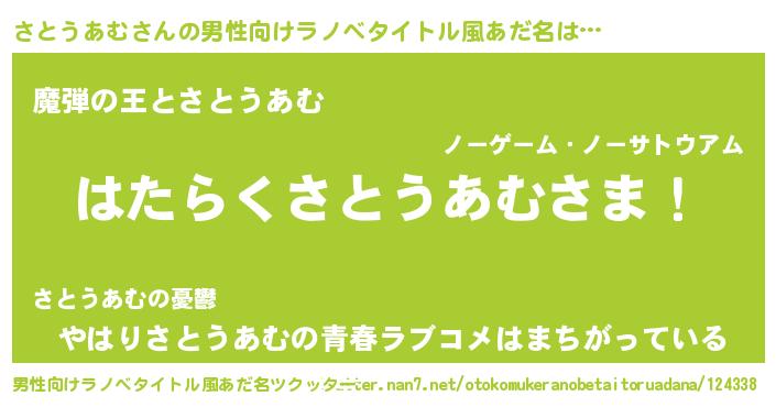 | 意味不明あだ名 | 『住所不定無職さとうあむ(98歳)』 |